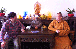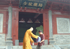 梅先生同少林寺方丈釋永信大師、少林藥局局長釋延琳大法師研討《百花散》的神奇功效
